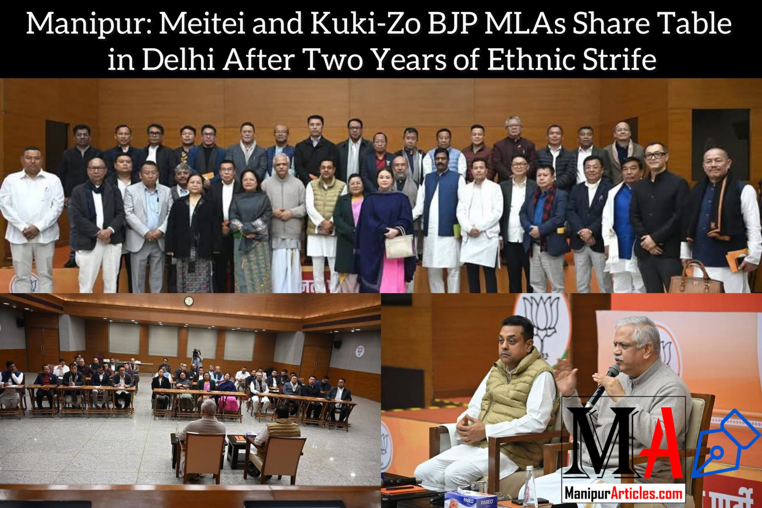 In a notable step toward political reconciliation in Manipur, four BJP MLAs from Kuki-Zo constituencies participated in the party’s legislature meeting in New Delhi on Sunday, sitting alongside their Meitei counterparts for the first time since ethnic violence broke out in May 2023.